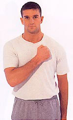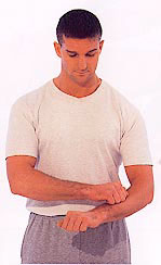Hold one arm out slightly to the side. Beat down the inside to your hand and beat your palm. Turn your hand over and beat the back of the hand, then up the other side of the arm to the shoulder. If any areas feel tender, which you will probably find on the forearm, beat them for an extra few seconds. Repeat on the other arm.