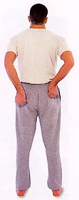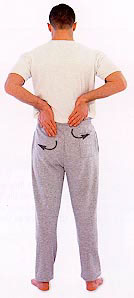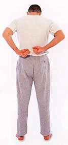 Still standing straight, beat both buttocks with loose fists. Alternatively, twist slightly to one side and beat one side at a time.