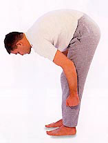 Bend forward. Using a rhythmic beat and working on both sides of your legs together, work down the insides and down the front. Beat the front of your feet. Return up the back of your legs working on to the buttocks.