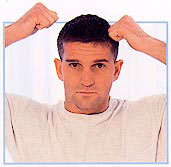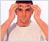 Place your fingers between 0 your eyebrows; push up and out gradually covering the whole forehead. Work in lines to cover the forehead.