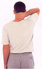 Using one hand, grasp the back of your neck. Squeeze the muscles between your fingers and the heel of your hand working from the base to the top. Change hands and repeat.